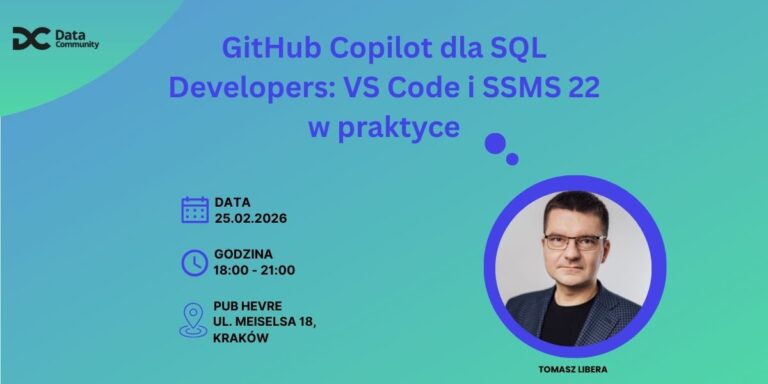 Czy korzystacie już z integracji GitHub Copilot z SSMS 22? Jeśli chcecie zobaczyć ją w praktyce, zapraszam w najbliższą środę (25 lutego) na 138. spotkanie